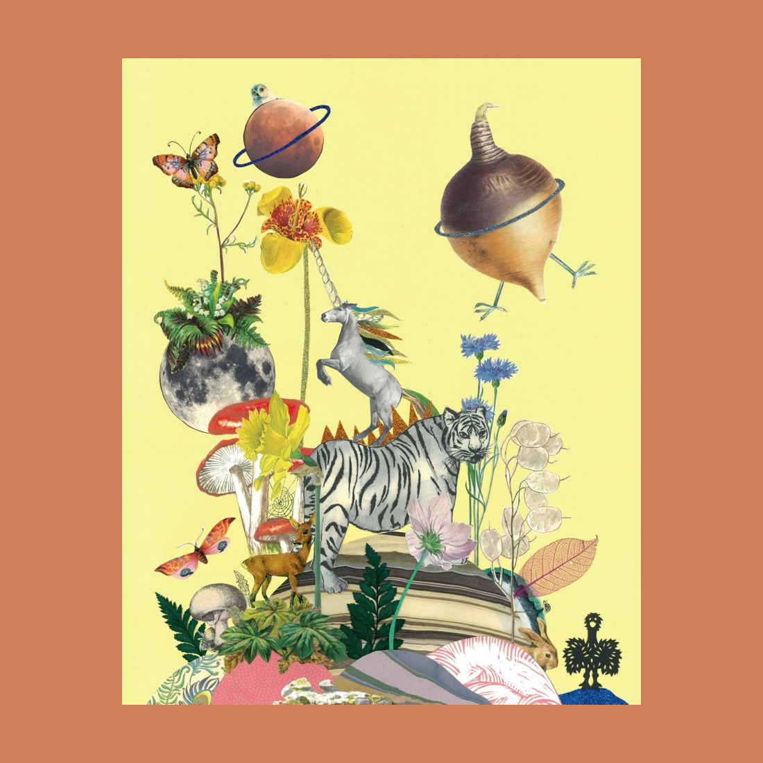Originalen til alle motivene er håndlagde collager. Magien gløder når Tex og Jack klipper og limer på verkstedet som er fylt med bussbilletter, fotografier, gammelt sjokoladepapir, stempler, glitter, blonder, klistremerker og mye annet som er samlet gjennom årtier. Sammen og aldri aleine, skaper de små og store univers ut fra felles fantasi.